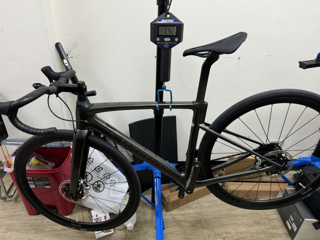 news 最新消息 入手 2024 S-Works Roubaix SL8 簡單開箱 剛遷回來當然在還沒裝卡踏之前先秤重量 可由秤上顯示知道這個尺寸52,含11公分龍頭與碼表座的成車空重約7.42公斤,以一台類似Gravel Bike的Endurance Bike這重量算輕的了。 再來左右兩邊的全車照 接下來是我認為這台車最騷包的彩虹鏈條與彩虹飛輪 最後是這台車最大特色的 Future Shock 3.3,這是一個輕量,可調整的小型前避震器。讓你經過如石板路般顛簸路面時能舒適且快速地通過。 晚點再提供試騎心得與影片。 返回清單頁